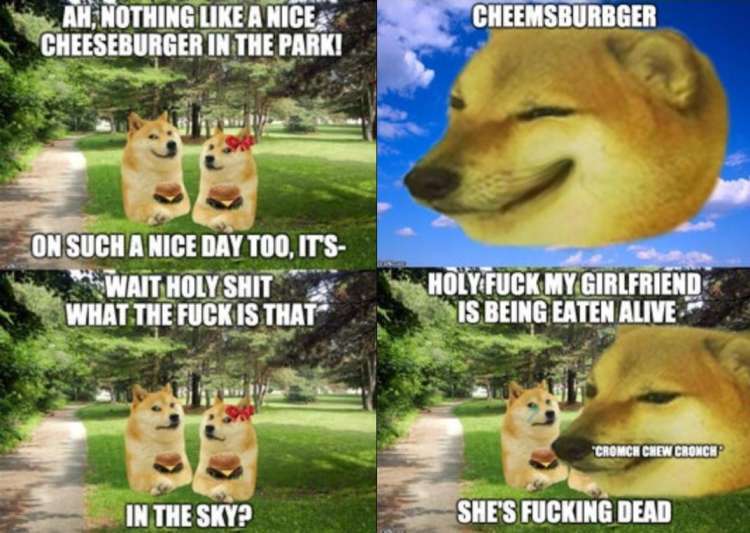 2年之后,有喜欢制作meme的网友利用这张照片进行了再创作,和Doge一起做了一张四格漫画,并称它为“Cheemsburger”(芝士汉堡),Cheems从此成了网友对它的爱称。