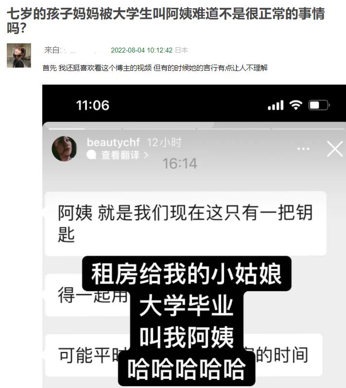 ——就因为叫了一声阿姨,刚大学毕业的房东又要放到网上吐槽又要被迫“比美”,春妈的反应是不是有点过大,就像网友说的,春妈这个态度,明显是把“阿姨”当成一个贬义词。