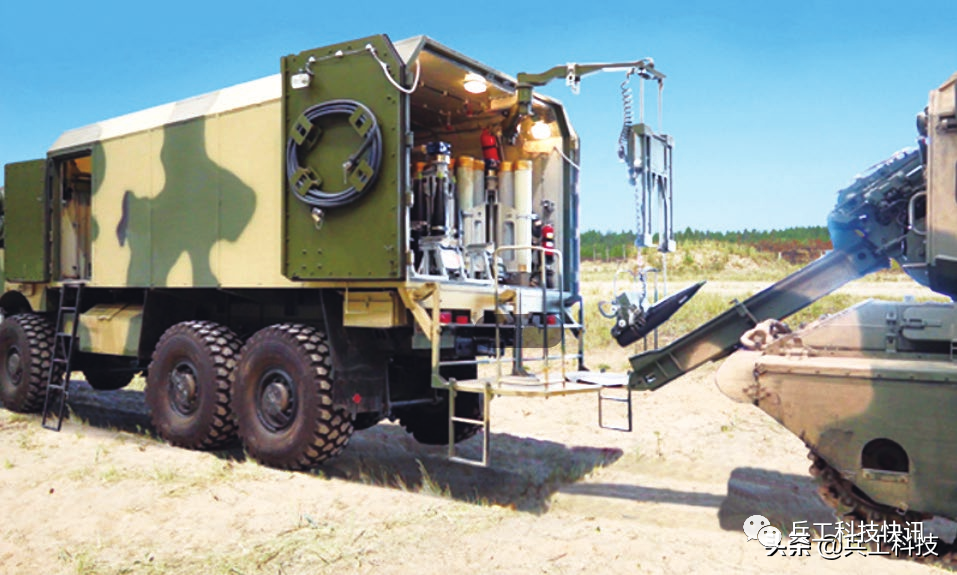 图注:俄罗斯“联盟”-SV轮式自行火炮配备的弹药装填车进行装填