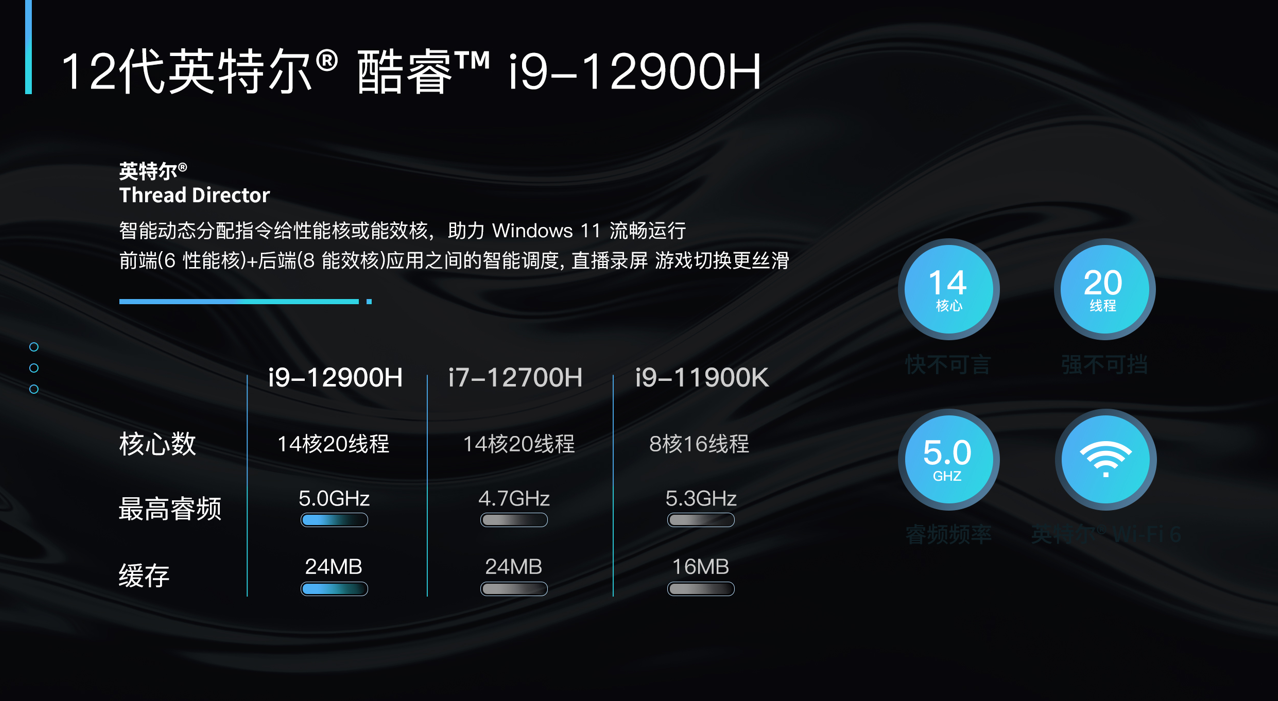就拿新品种的T8-DA9NT而言,这款配置强悍的笔记本电脑搭载了第12代英特尔酷睿i9-12900H顶级处理器,还有着6性能核+8能效核构成的14核20线程混合CPU架构,无论是深度学习、运行大型创意设计软件、还是玩一些主流的3A大作都丝毫没有问题。它还拥有5GHz睿频,24MB缓存,这也让其在多应用多任务的处理中游刃有余,丝滑的不得了。