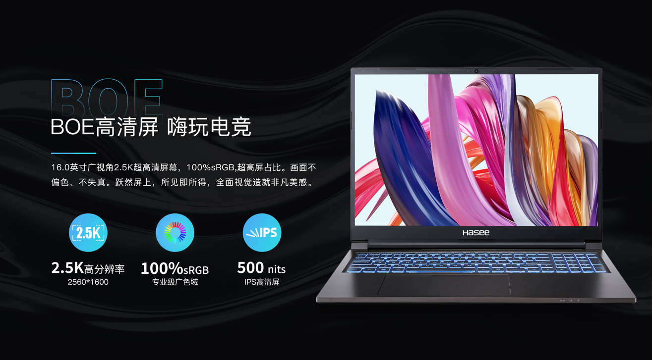 这一次全新战神T8-DA9NT的炫酷外观设计看起来非常漂亮,外观方面采用16英寸机身设计,搭配了2.5K即2560x1600分辨率IPS屏幕,16:10的黄金比例赋予更大视觉空间,同时视觉沉浸效果更优。100% sRGB搭配165Hz高刷,让你拥有鲜艳画面的同时感受丝滑流畅。