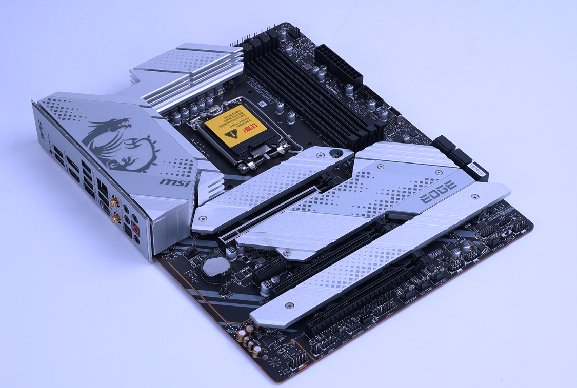 主板方面,对于带K的12600KF来讲,选B660和Z690其实都没毛病,前者足够发挥其最高睿频性能,而后者优势在于可直接怼CPU进行全核超频使用。测试平台选择主板是微星MPG Z690 EDGE Ti WIFI DDR4 刀锋主板。时下网红主板,16+1+1相直连式供电,外加双8pin的外接CPU供电,相当给力。