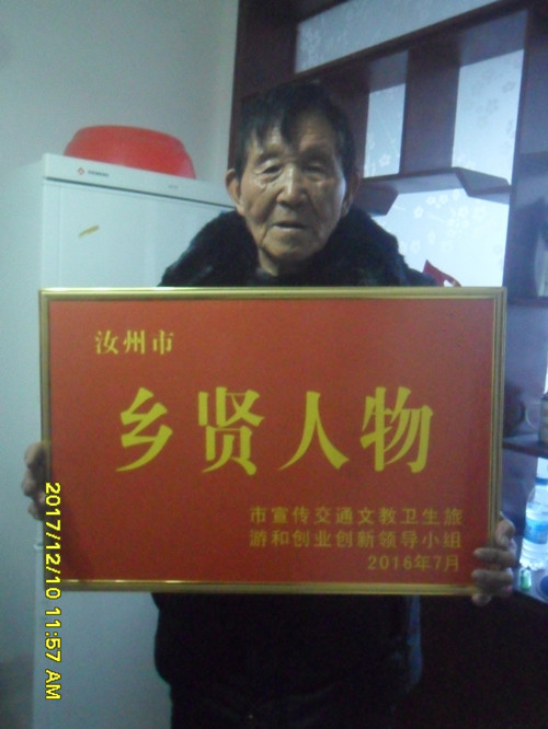 杜书安被评为汝州市乡贤人物
