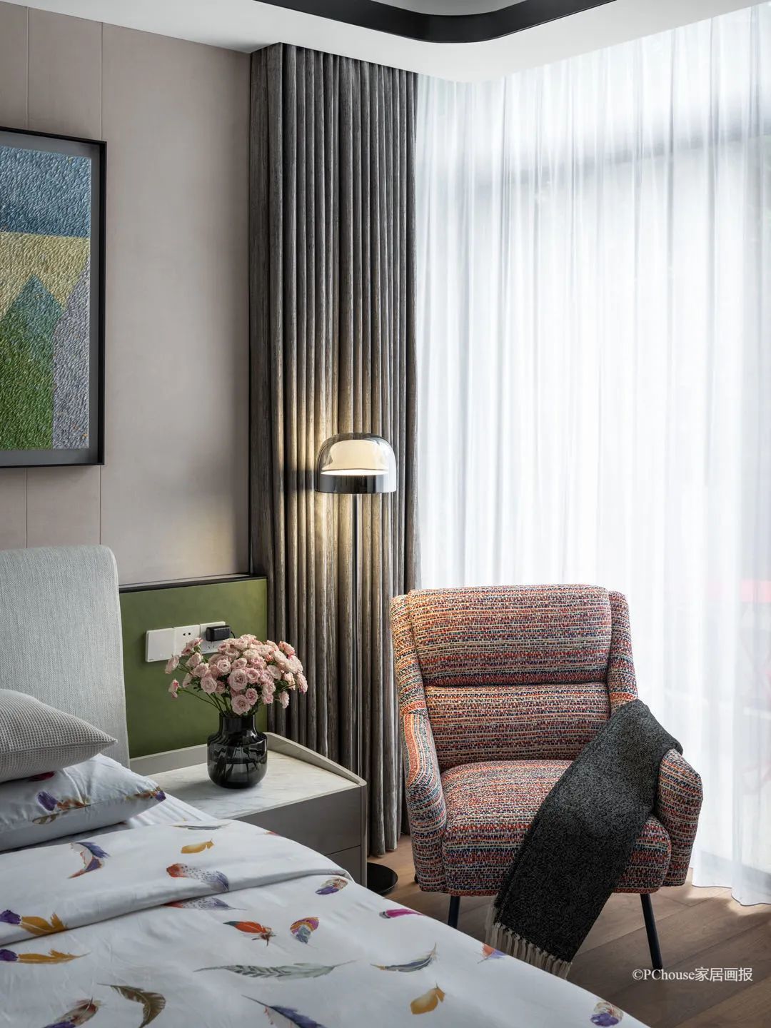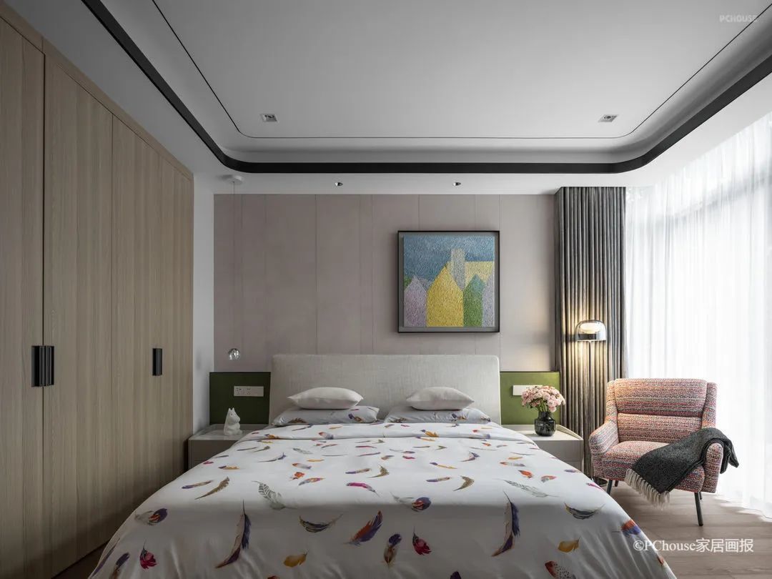 Simon回忆道:“再以卧室为例,空间以选色纯净的组合作主轴,主卧类似传统建筑阁楼的屋顶设计,洋溢着淡淡的亚洲美学。”
