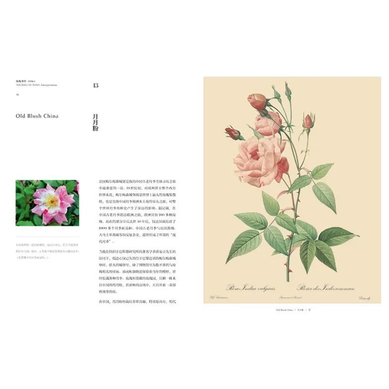 这样一本国民级玫瑰典藏书,是两位玫瑰大师雷杜德与王国良跨越200年的对话,用原书版画和现存活植物高清图像作比较,辅以文字疏解,力图还原雷杜德每一幅玫瑰画作的前世今生,让我们一目了然。