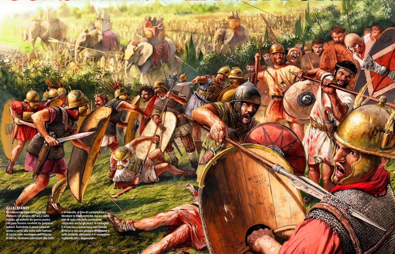 不过,这一回,相对而言更像草台班子的迦太基军行军到黎明时分就被罗马军追上,哈斯德鲁巴麾下甚至有不少好酒的高卢人直接滞留在营地里,醉醺醺地被罗马人砍死。