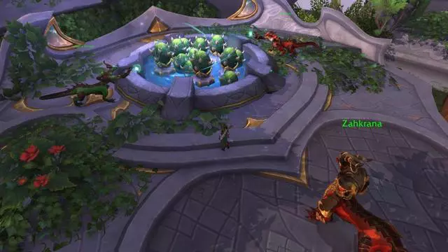 涓涓细流流下,滋润着缤纷的花草,还不时有红龙园丁飞上前去修理。