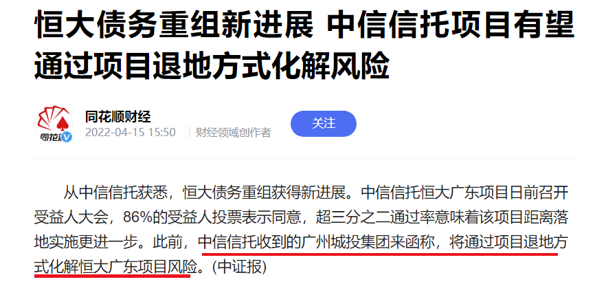 据中证报报道,中信信托收到广州城投来函称,将通过项目退地方式化解恒大广东项目风险。据悉,恒大曾将足球场项目抵押给中信信托进行融资,但却把融回来的钱投到其他房地产项目。