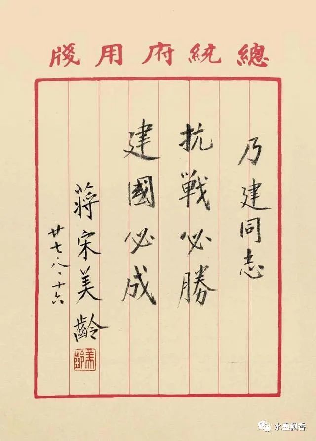 相信,她的书法水平,放在当今,绝对是一流的大咖,对于宋美龄的书法,各位网友怎么看?