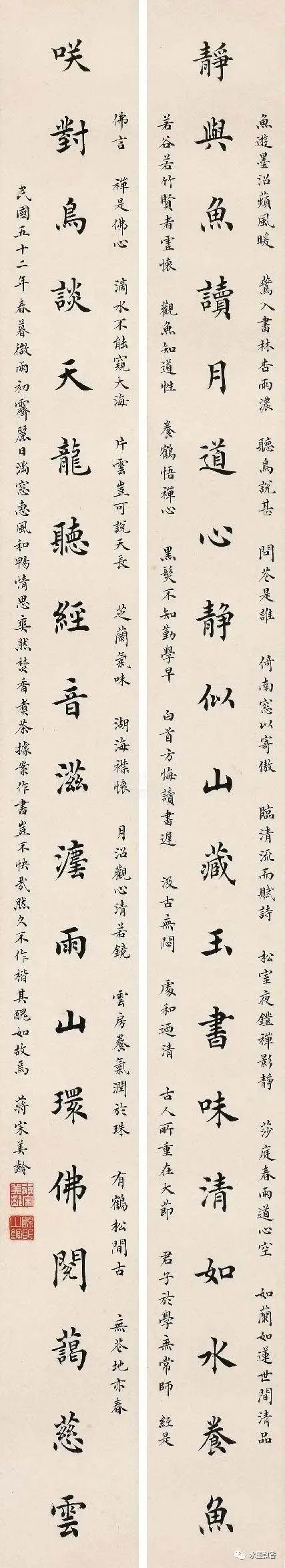她的楷书,古韵更加浓厚,而他的行书亦是如此,其笔下的行书,整体上以赵孟行书为主要典范,同时兼收董其昌的笔意,虽然没有那种散淡的意趣,但是整体上却非常耐看,还略带颜体的浑厚之感,兼容并蓄。