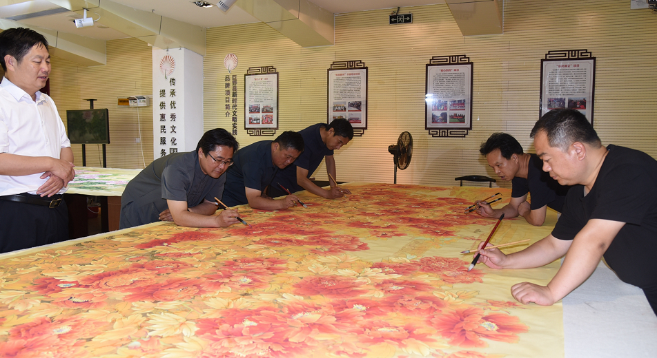 8月7日上午,巨野县书画院院长程军伟在接受记者采访时介绍,《盛世长虹》宽540cm、高200cm,由巨野县书画院组织画家历时52天创作而成。该作品以黄河文化、牡丹文化、红色文化为创作元素,黄河体现中华民族无坚不摧、坚韧刚强的品格,牡丹寓意祖国繁荣昌盛、人民幸福美好,延河水映照出中国共产党人的初心使命,宝塔山象征着红色革命精神。