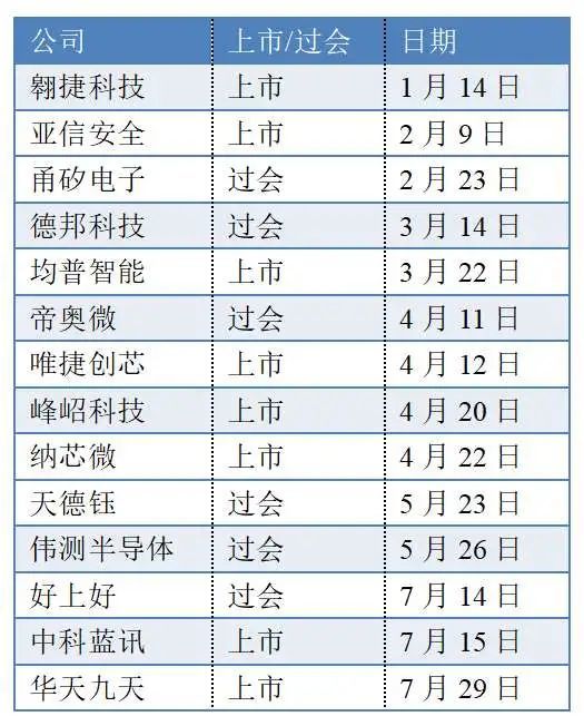 在江波龙和深圳中微上市前一周,国内EDA领军企业华大九天于7月29日登陆创业板,元禾璞华位列核心股东。更早之前,翱捷科技、亚信安全、均普智能、唯捷创芯、峰岹科技、纳芯微、中科蓝讯等相继上市,甬矽电子、德邦科技、帝奥微、天德钰、伟测、好上好等顺利过会。继2021年之后,元禾璞华又助多家企业登陆A股市场。