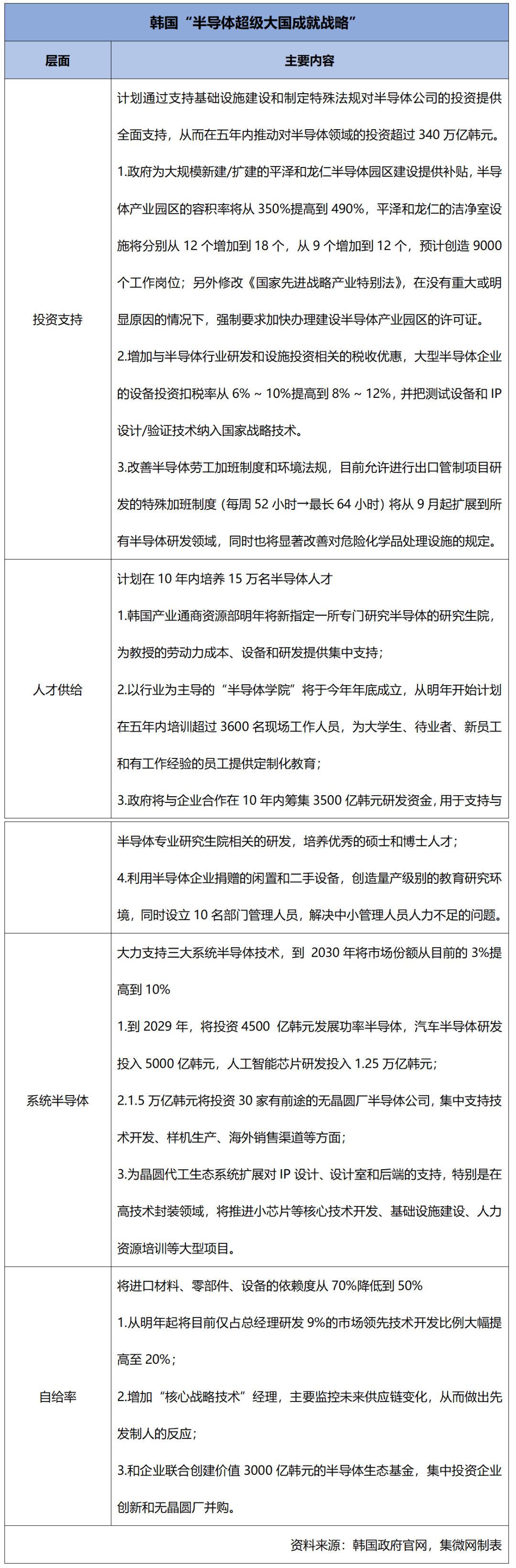 在政府+“大财团”模式的有力推动下,韩国在全球半导体产业链夺得了一席之地。然而这一片荣景背后又隐藏着哪些忧虑,或许能够从韩国最新发布的“半导体超级大国成就战略”中看出一二。
