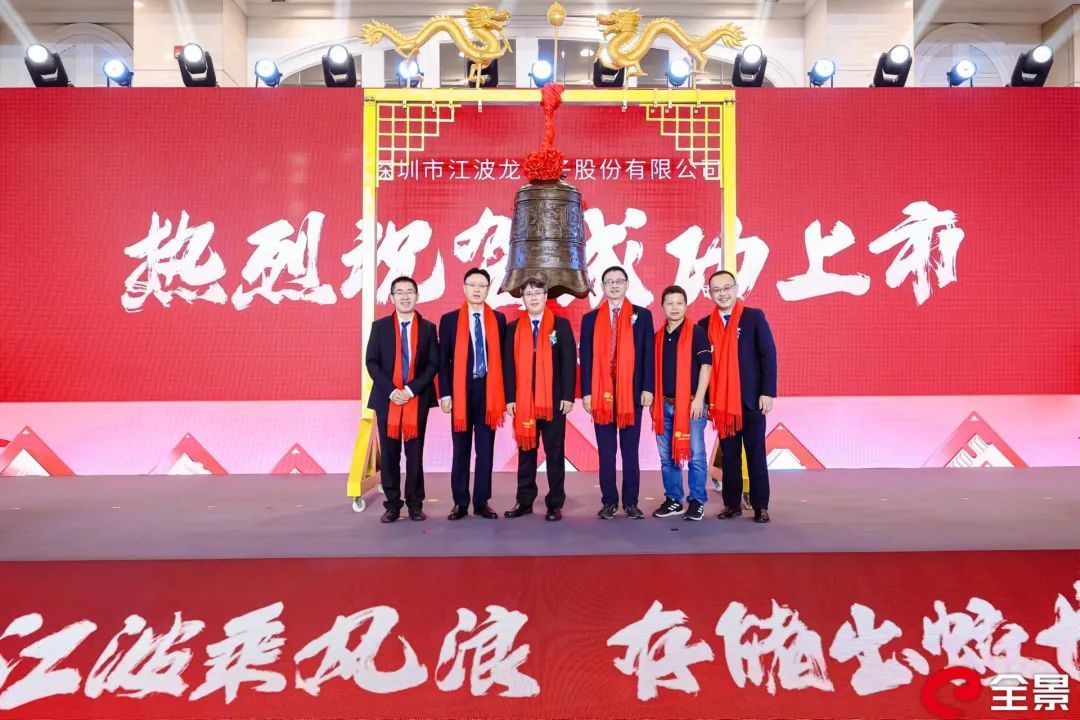 图为元禾璞华管理合伙人陈大同(右三)、合伙人胡颖平(右二)、执行董事施青(左一)参加江波龙上市仪式