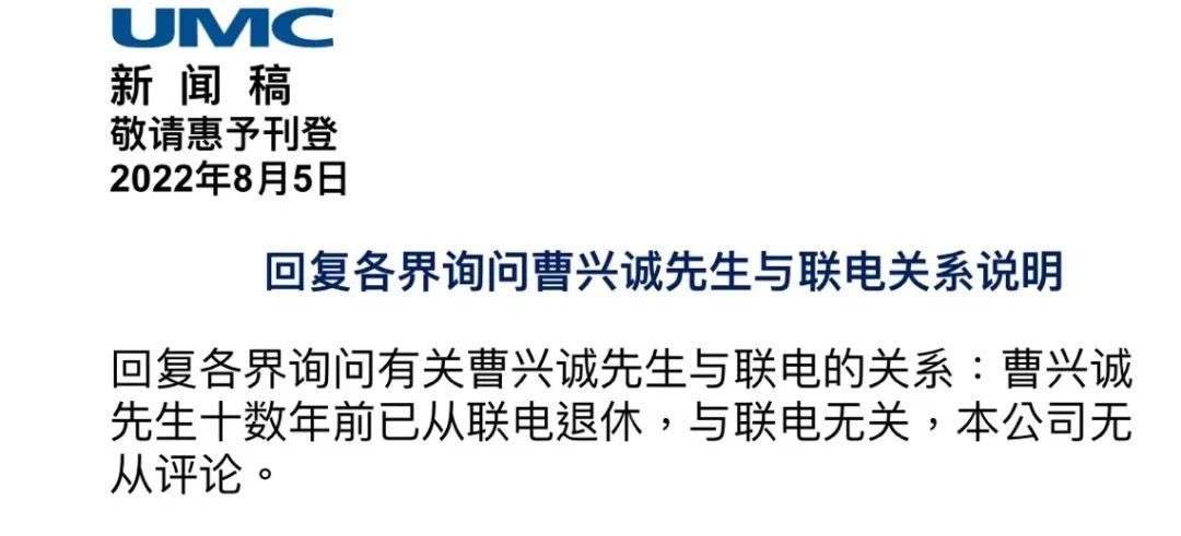 3、联电澄清:曹兴诚与公司无关联,个人言行不能代表公司