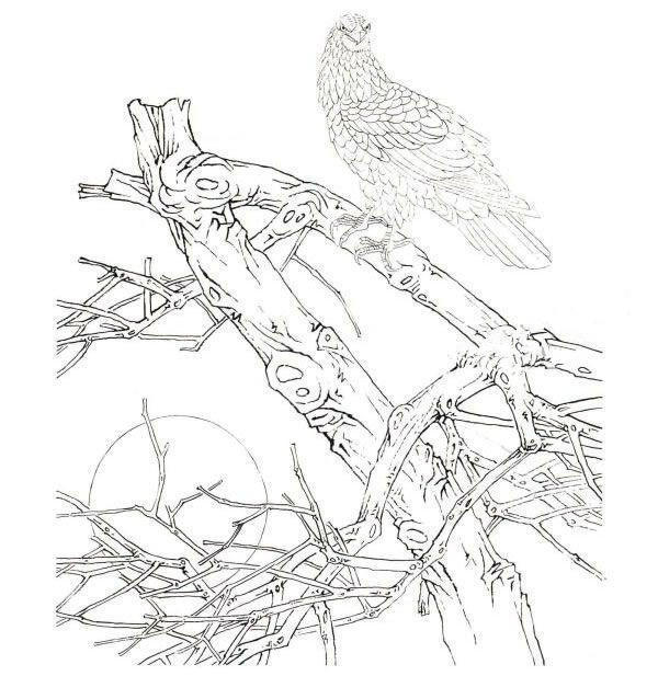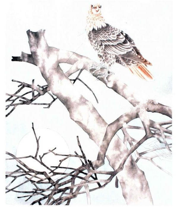 工笔画《古木英姿》技法步骤图示(白尾海雕工笔画法步骤图示):