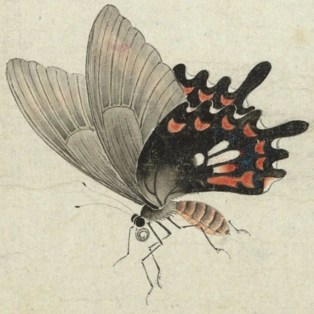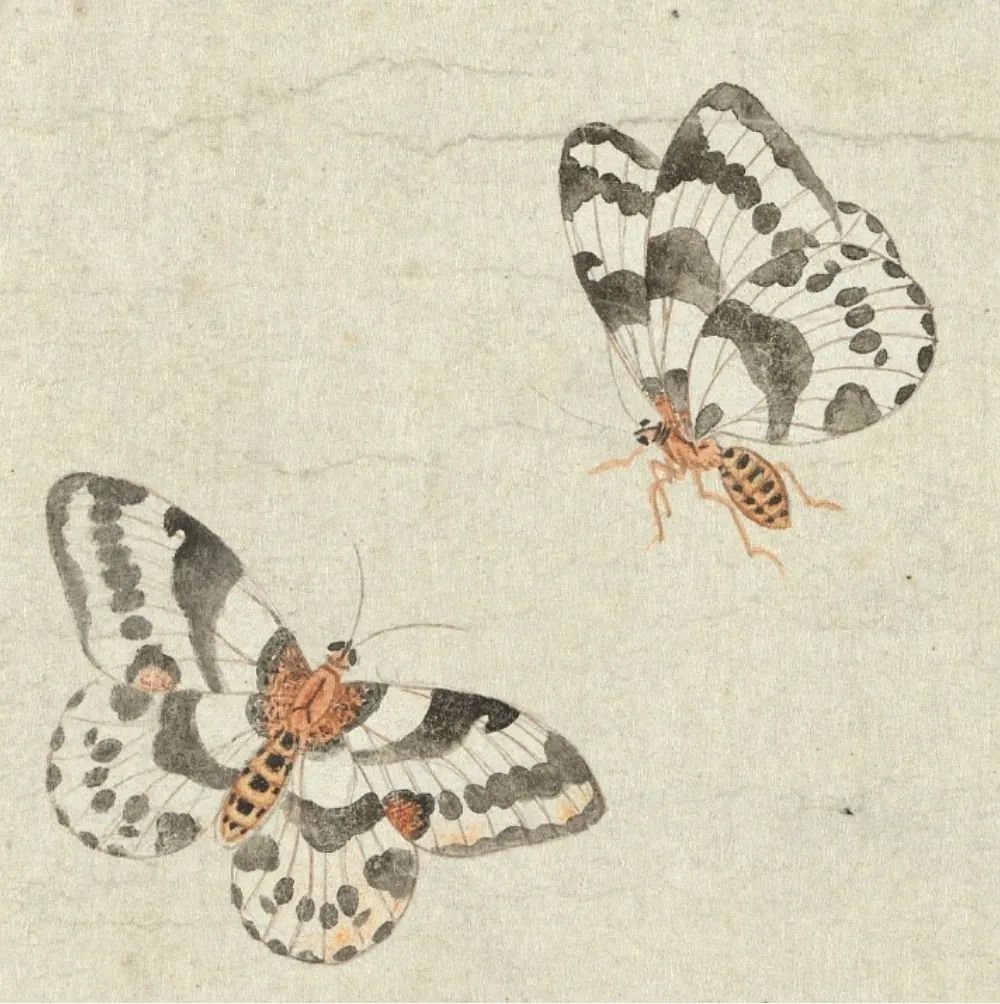 其中清代画家朱汝琳《画草虫》这幅画中一共画了七十只草虫,栩栩如生,成为十八世纪初的一份珍贵的生物记录。今天我们整理并介绍了了画种一部分草虫的创作原型及相关蝶影,以飨读者。