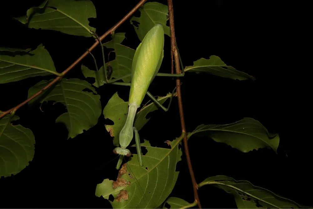 根据触角长度,前足,前胸背板及前翅的外观,可以判断这只螳螂可能是中华斧螳 (Hierodula chinensis) 的雄成虫。中华斧螳是中国东南部及中南半岛常见的螳螂之一,带腰身的前胸背板,橘红色的前胸腹板,以及前足基节内侧具浅黄色小棘为本种的主要特征。近年因为国际贸易随着货物、农产品而成为韩国、日本的入侵物种,在中国台湾地区并无本种的原生或入侵纪录。外观上较为相近的物种为台湾巨斧螳 (Titanodula formosana),广泛分布于中国大陆及台湾地区的中低海拔山区、越南等地。