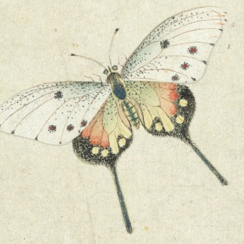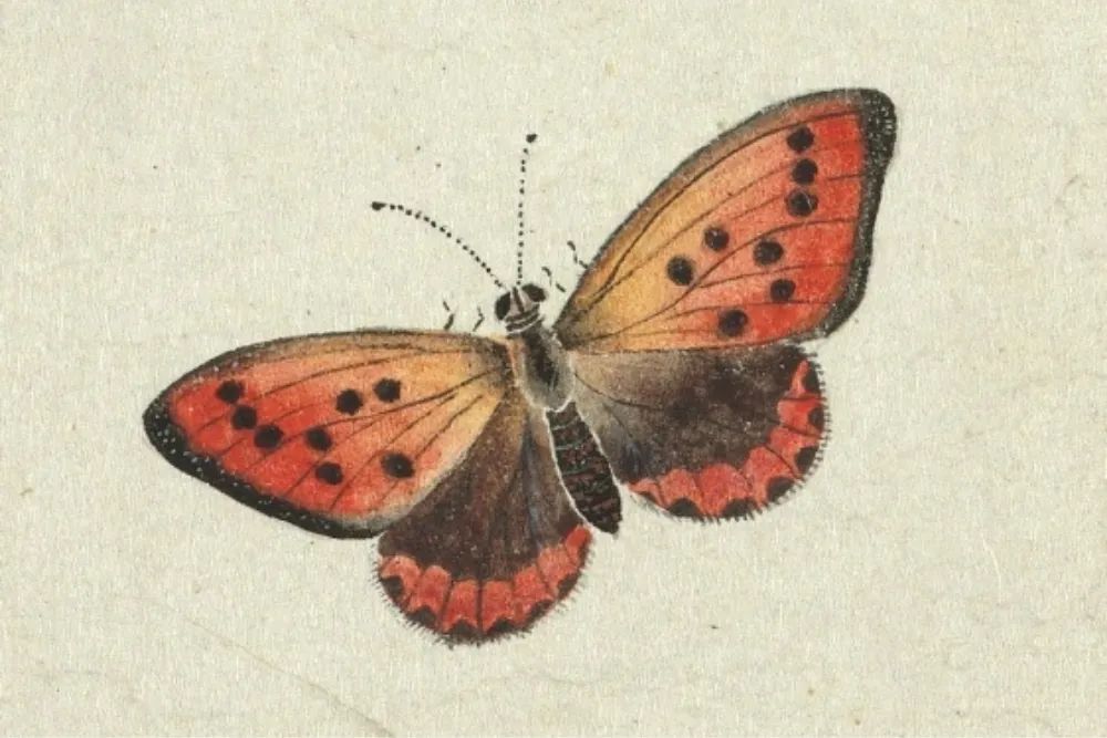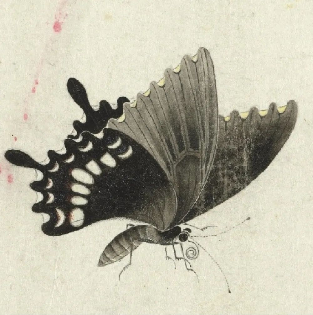 由触角判断此图所绘应为鳞翅目蝴蝶,但种类无法明确判别。