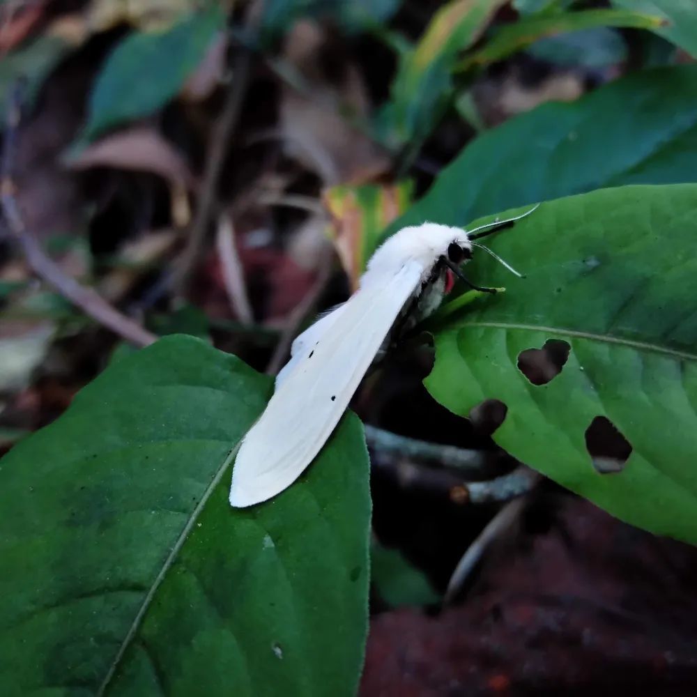 此图可能为裳蛾科中毒蛾或灯蛾亚科的物种。有许多物种成虫在裳蛾科中演化出白色的胸及翅,腹部密布红色毛绒等形态特性,在毒蛾亚科中更有许多物种带有令人刺激、发痒的毒毛,这些醒目的体色通常具有警示天敌的功能,防止天敌将其当作食物吃下。有些雌虫会有翅退化或消失现象,移动能力差,刚羽化雄蛾便已准备与其交配产卵。雌虫腹部十分硕大,能一次产下数量庞大的卵,幼虫常具有许多固定排列的长毛,如果碰到也可能引起红疹。
