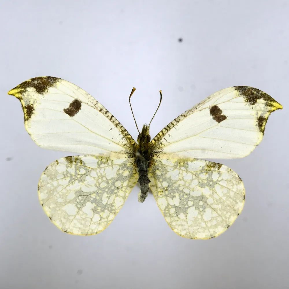 此图所绘接近粉蝶科昆虫,左图是黄尖襟粉蝶雌蝶,右图翅形接近钩粉蝶。粉蝶科为常见的小型蝴蝶,翅膀颜色多以白色和粉色系为主。多数种类飞行状态轻盈纤弱,速度并不快。常可见于草地、花园和菜园中,部分种类为重要农业害虫,像是纹白蝶 (Pieris rapae) 取食十字花科的农作物。