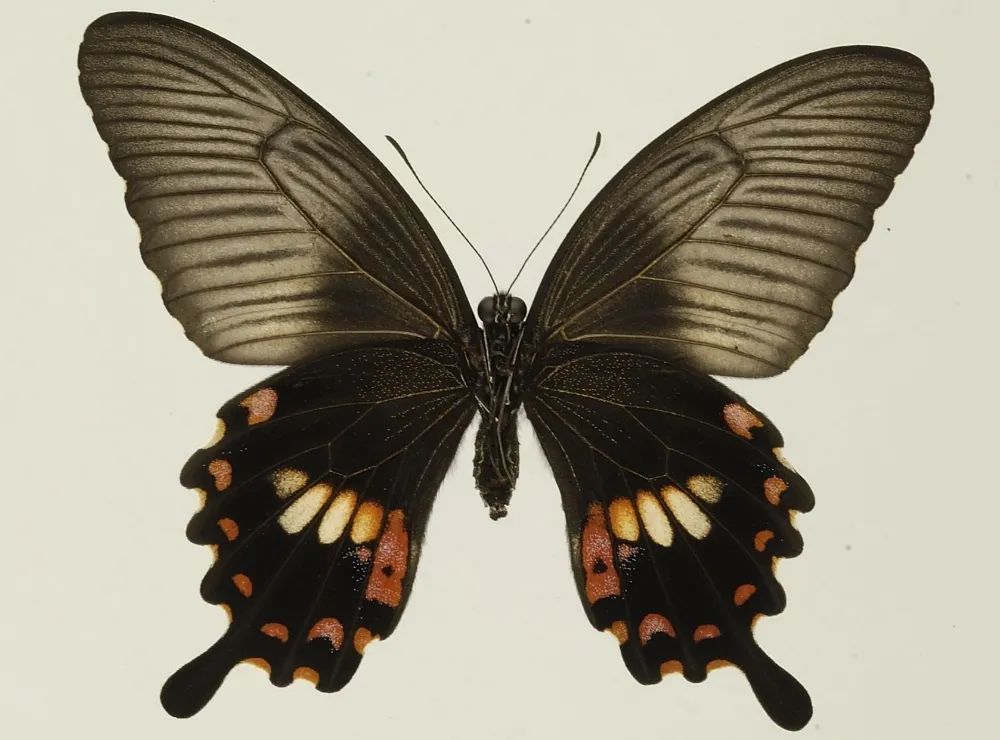 此图所绘不论是翅脉、斑纹、基本身体形态都与现生玉带凤蝶相近,且应为雌性。