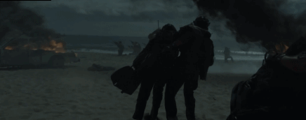 远处乌云密布,近处汽油燃烧的火焰冒出了浓烈的黑烟,整体色调无限趋近于现实,压抑又沉重。晃动的镜头感也加剧了观众的真实感。