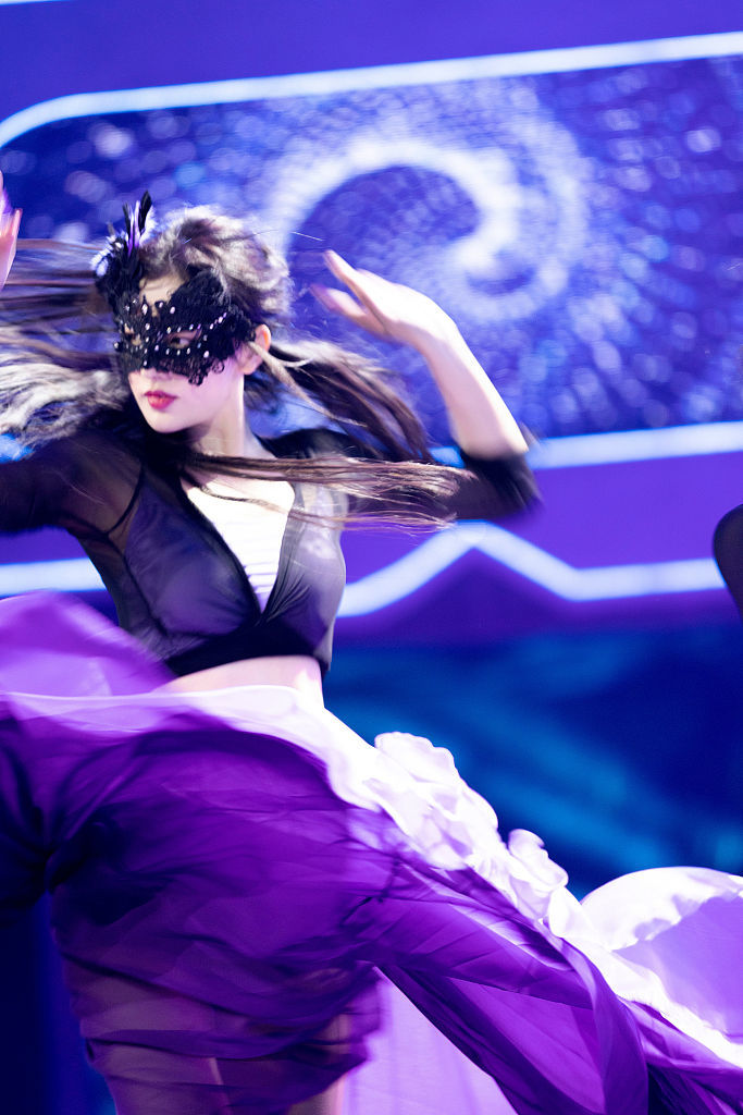 孔雪儿《蒙面舞王》舞台写真 紫色造型营造神秘梦幻氛围