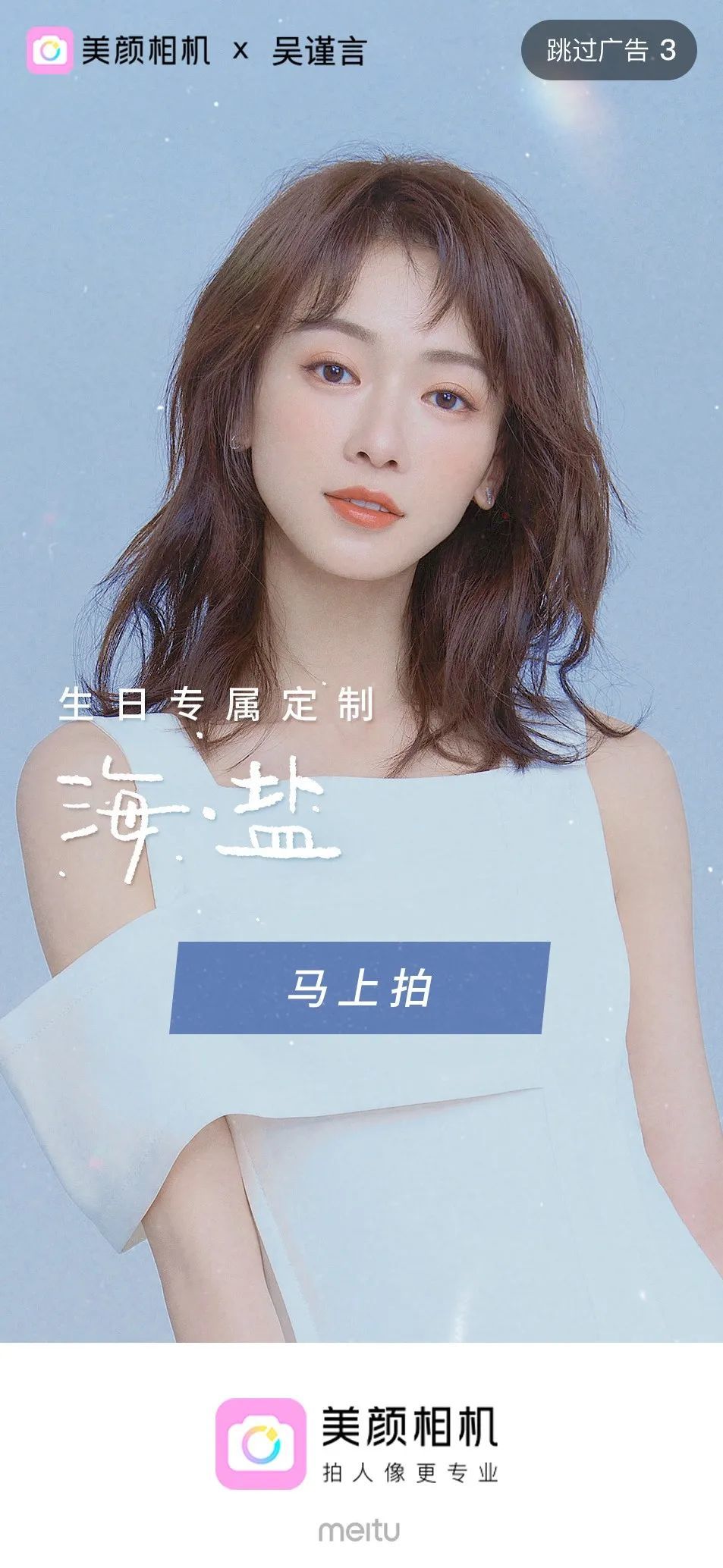 美颜相机APP的“乘风破浪”专区里除了这三款姐姐们的公演舞台妆容之外,还有本季带给我们唱跳惊喜的姐姐——吴谨言的“海盐”定制妆容。