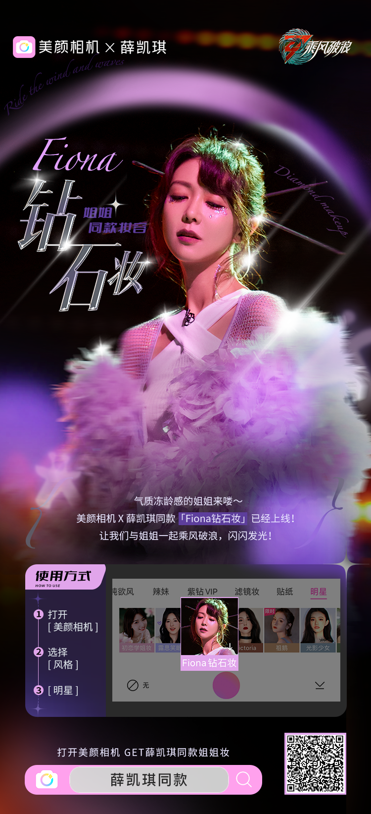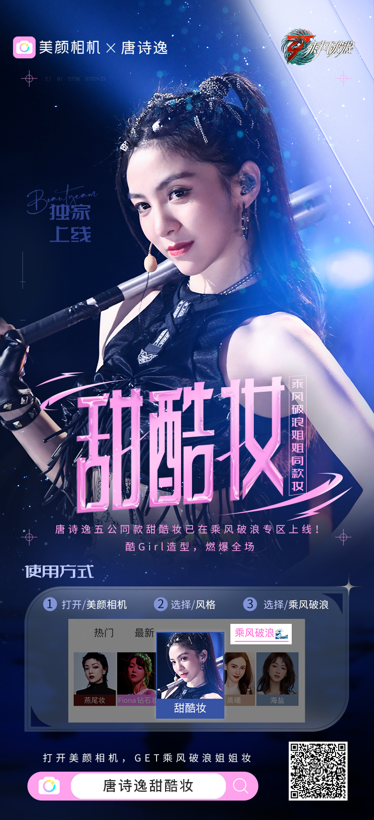 美颜相机联合《乘风破浪的姐姐》第三季,与薛凯琪、郭采洁、唐诗逸合作了三款公演舞台妆容。