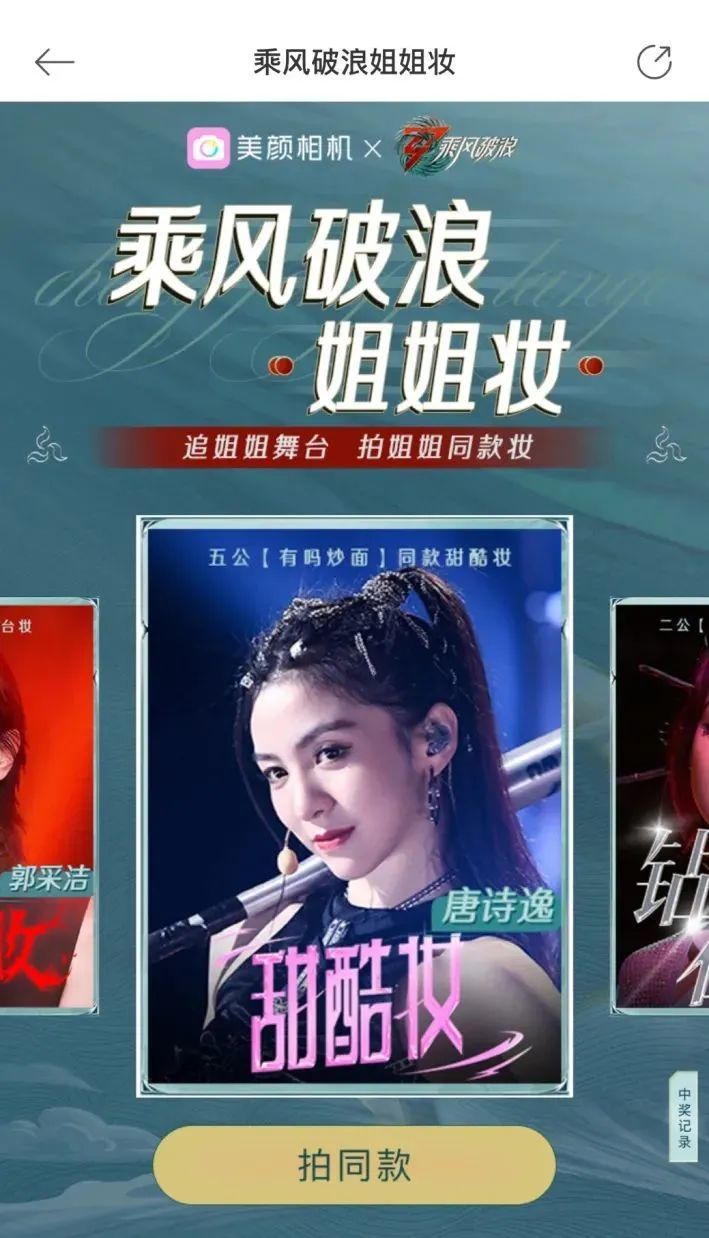 为了方便大家寻找,美颜相机设置了“乘风破浪姐姐妆”专区,点进去就可以拥有姐姐们的同款妆容了。