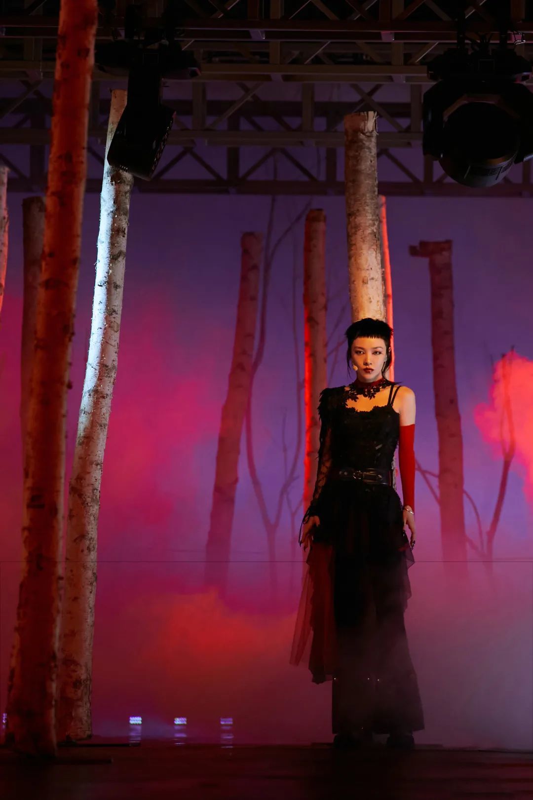 妆容配合舞台,主打黑、红色系,将热烈一同包裹于隐秘的黑暗之中。