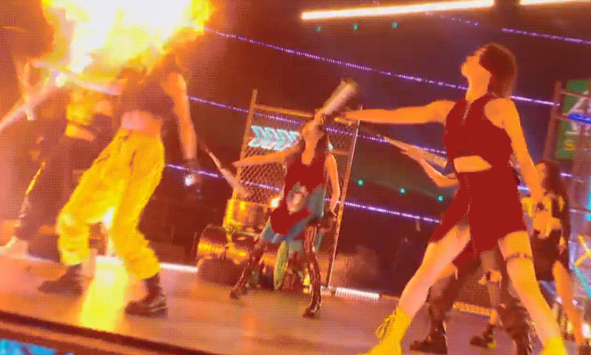 道具提前喷火,依然淡定的完成动作,道具掉落在地,流畅的动作衔接舞台,姐姐的魅力,就是这种淡定沉稳带来的安全感。