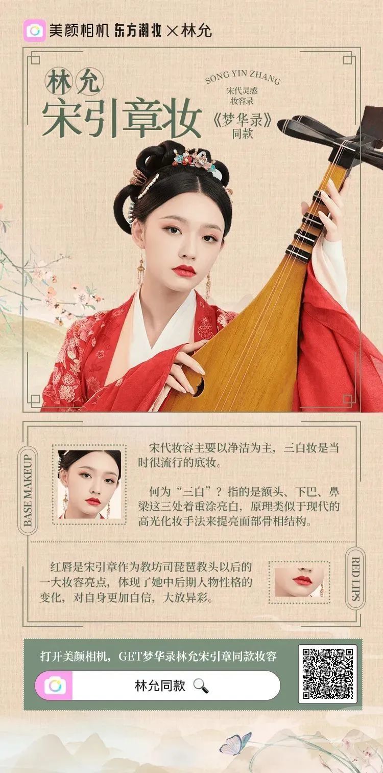 前一段时间《梦华录》大火的时候,美颜相机就合作林允打造了东方潮妆宋代灵感妆容录,展现了沉淀千年的文化之美,国风之美。