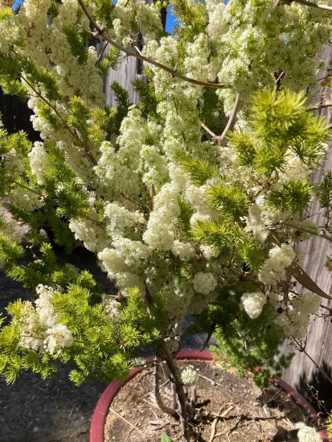 偶尔忘记给盆栽蓬莱松浇水是完全没有问题的,它的耐干旱能力比较强,底部肉质的根系储存了特别多的水分。