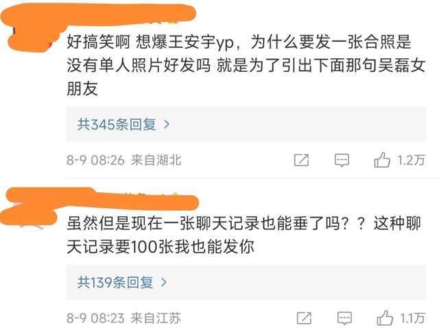 虽说两位当事人年龄相仿,谈恋爱也不足为奇,但网友们细细想来,也发现事情有点不对劲。这位网友想爆料王安宇的绯闻,为什么不发单人照片,反而曝光王安宇和向涵之的合照?难道就是为了引出后面那句“吴磊女朋友”吗?