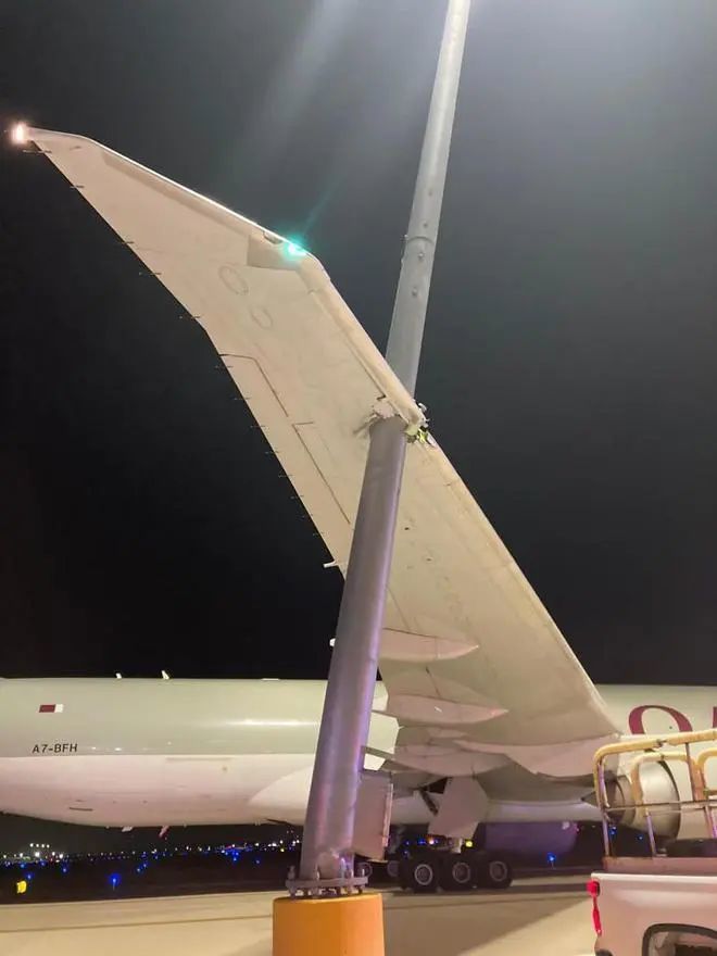 “卡塔尔航空公司可以确认,一架从亚特兰大飞往芝加哥的货机QR8141在芝加哥奥黑尔滑行时与灯柱接触,机翼受到一些损坏。该事件目前正在调查中,我们可以确认没有机组人员受伤。”