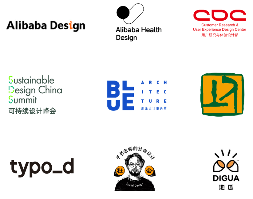 设计|阿里巴巴设计、阿里健康设计、腾讯用户与体验设计部CDC、可持续设计峰会、B.L.U.E.建筑设计事务所、土人设计、 typo_d平面设计工作室、子书老师的社会设计、地瓜社区