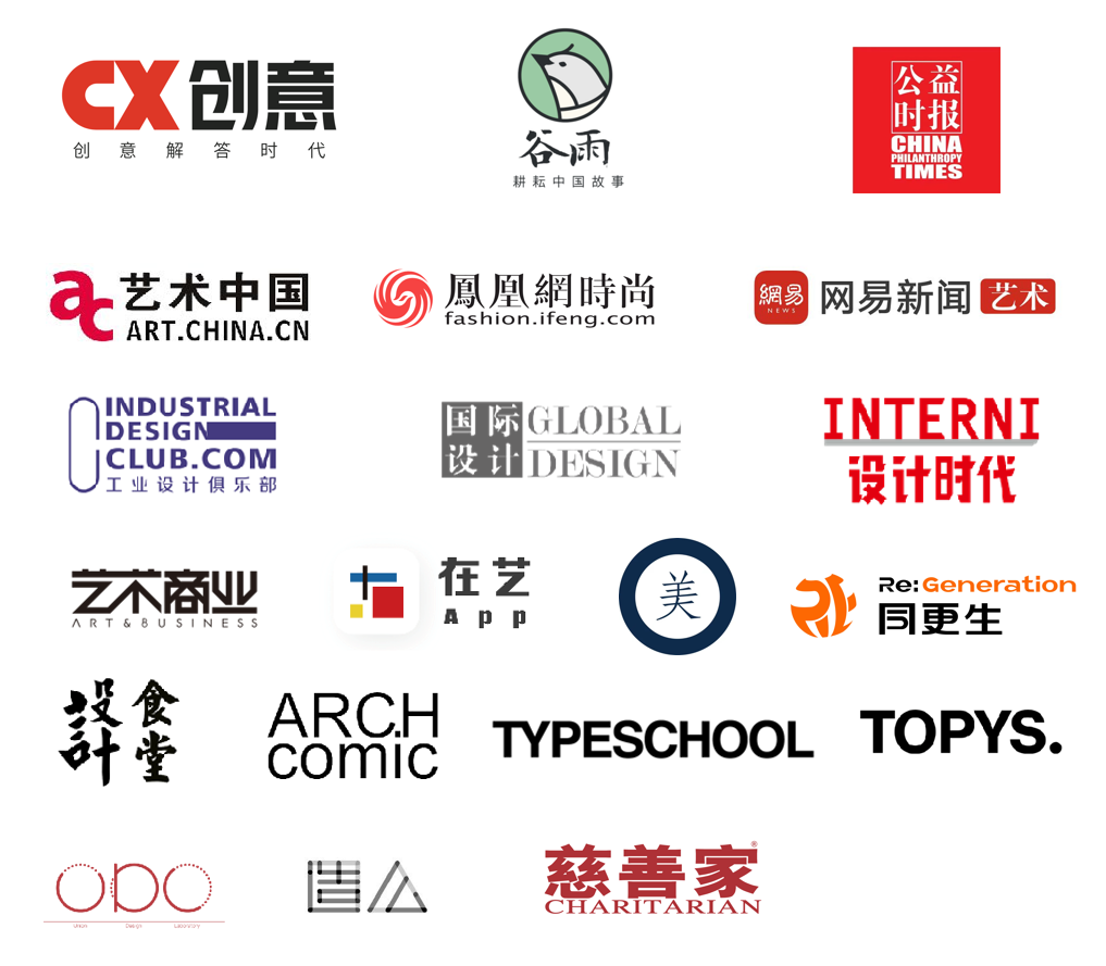 CX创意、腾讯谷雨、公益时报、艺术中国、凤凰网时尚、网易艺术、工业设计俱乐部、国际设计师、设计时代INTERNI、艺术商业、在艺app、一夜美学、同更生、AssBook设计食堂、Archcomic、Typeschool、TOPYS、UniDesignLab、Zaome造么、《慈善家》网站