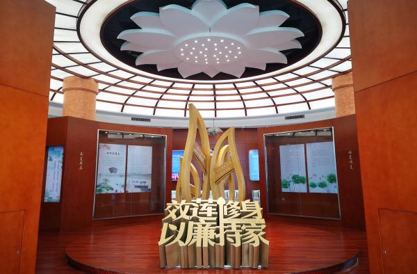 在荷博园旁,景区倾力打造了莲文化馆。该馆是集科普、廉政文化、产品展示为一体的综合性展览馆,馆内不仅展示了荷花的前世今生、民间传说、民俗文化、特色品种、价值应用等多种趣味知识,还可以通过观看警示片、听取讲解说明、学习家风家训等形式感受清正廉洁的浓厚氛围。