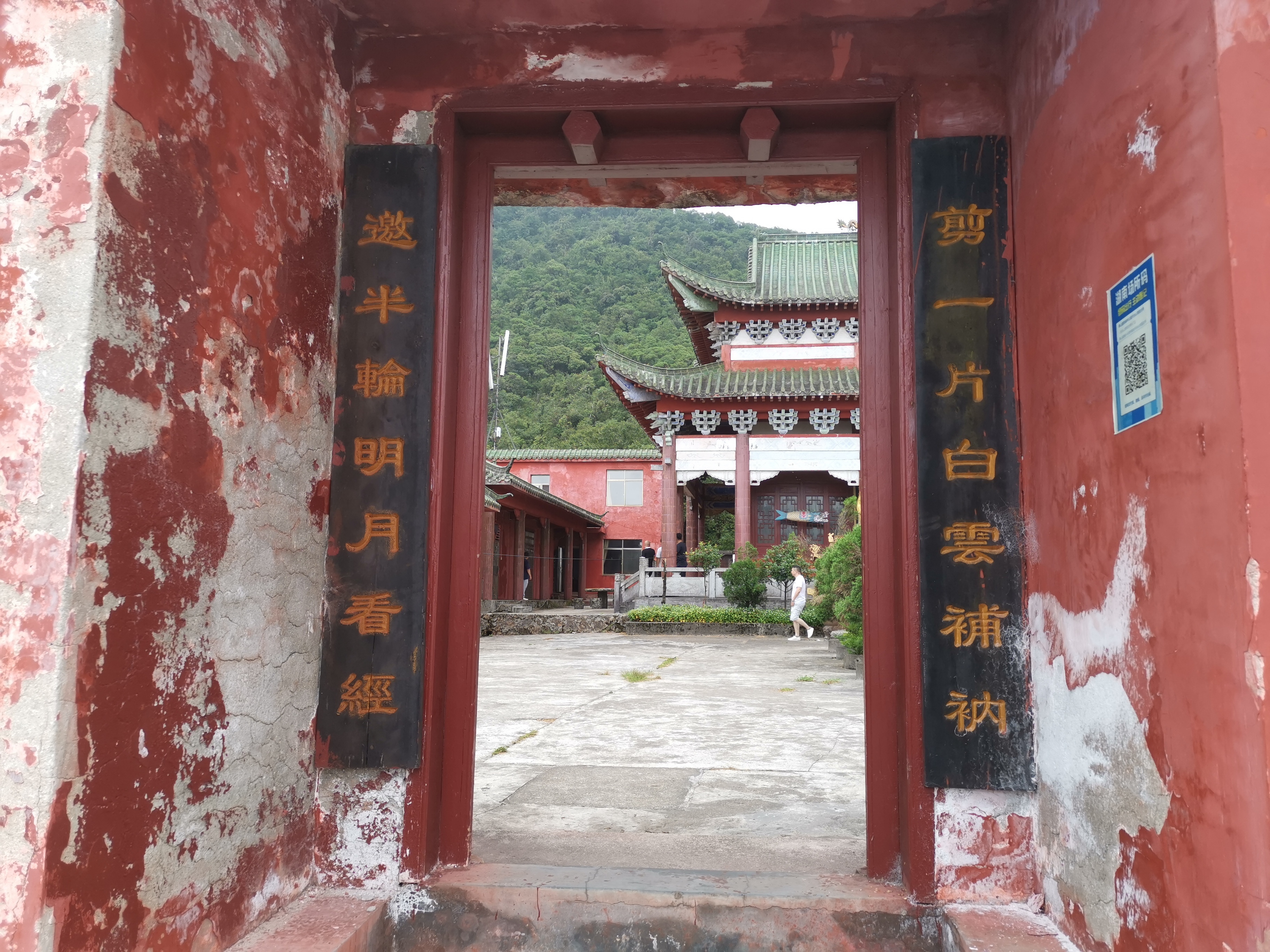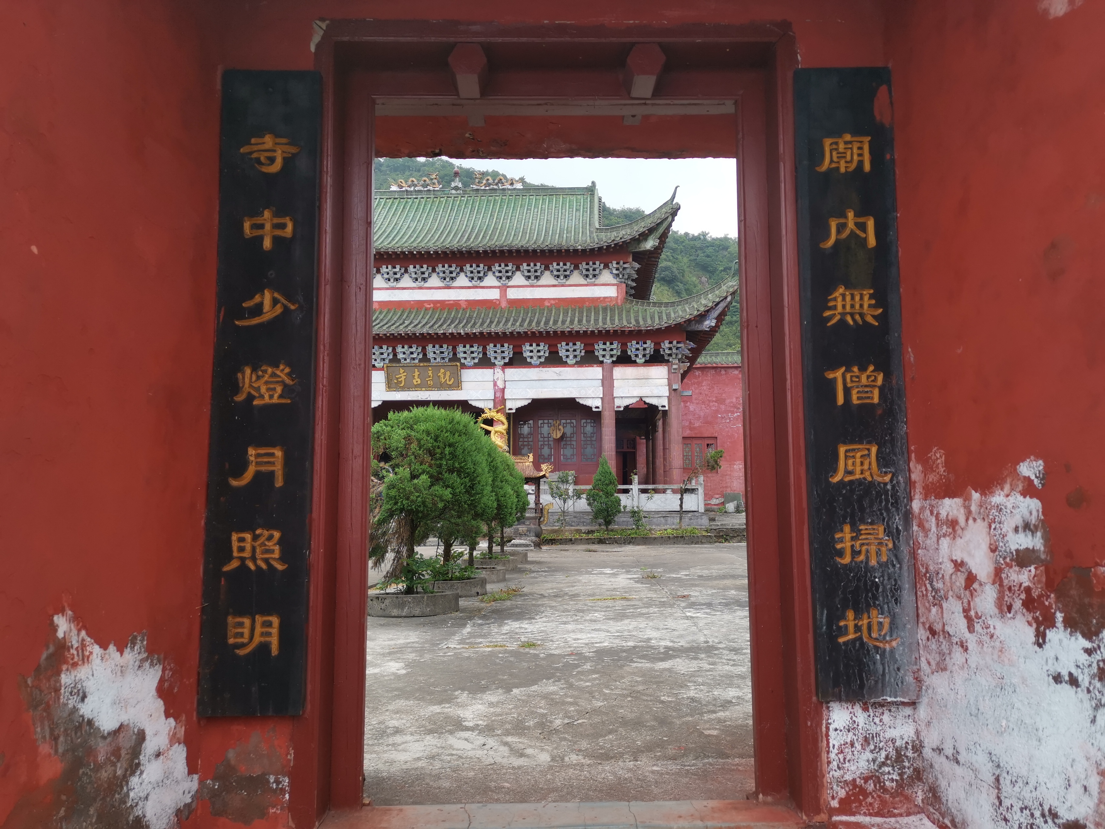 庙内无僧风扫地,寺中少灯月照明,自有通解,亦非天台寺原创,确是应景得当。所谓无僧风扫地,述其复建之时庙已荒废;亦诉复建之初,条件艰苦,以月作灯;当然月照明、风扫地,也是风景,神仙、高僧都住名山宝地。
