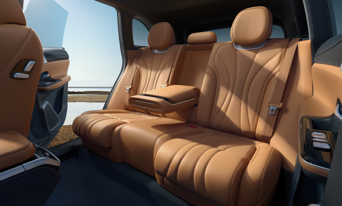 此外,小鹏首创的象鼻式大腿托也是对后排体验的极致追求。座椅接近大腿的位置,拥有类似厚厚的“坐垫”,而往前突起的位置比较像象鼻,加长加厚的坐垫前半部分带来堪比小腿托的舒适体验。