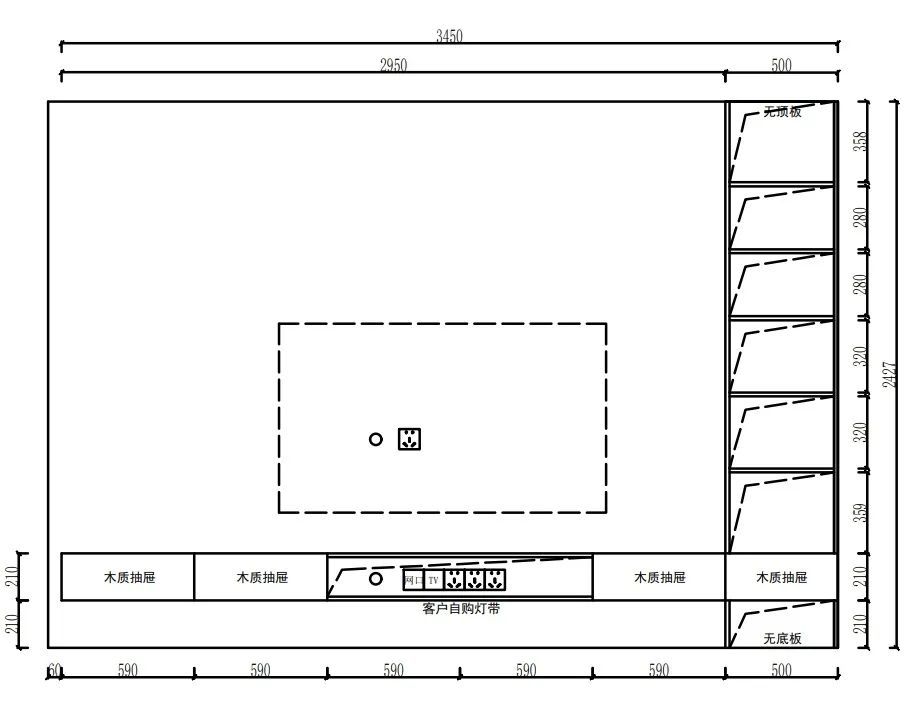因为一直习惯用某品牌的抽纸,所以小鱼儿在定制柜子的时候,特地将左侧格子设计成抽纸大小,并且在下方开孔,打造出隐藏式纸抽盒。