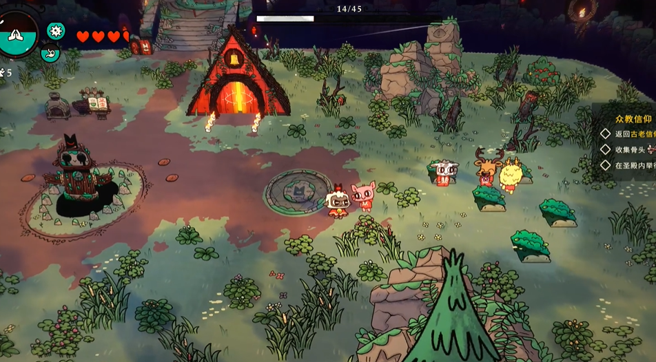 抛开特殊的教派内容,游戏也具备我们常见的经营内容:种田、钓鱼、建造,甚至是给基地的教众们铲屎……总之,玩家更像一个保姆式的大家长,事事亲力亲为,为咩咩神教鞠躬尽瘁。