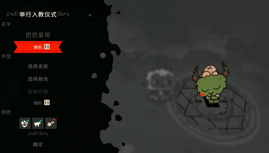 游戏中,玩家所扮演的角色即是游戏世界里的“最后一只羔羊”,在获得“外神”的帮助后免于被四位邪恶BOSS献祭的命运。作为回报,小羊需要建立起自己的教派(或许可以称为咩咩神教),广收信徒、壮大势力、打败BOSS就是玩家在游戏中的终极目标。