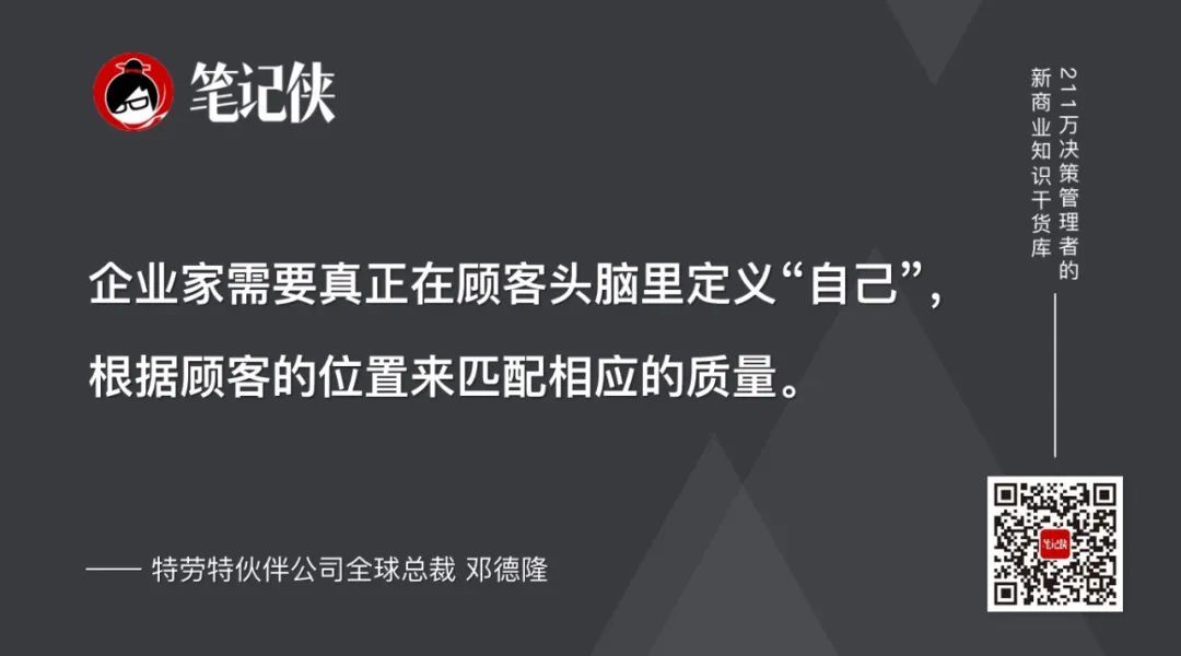 所以, 企业家需要真正在顾客头脑里定义“自己”,根据顾客的位置来匹配相应的质量。