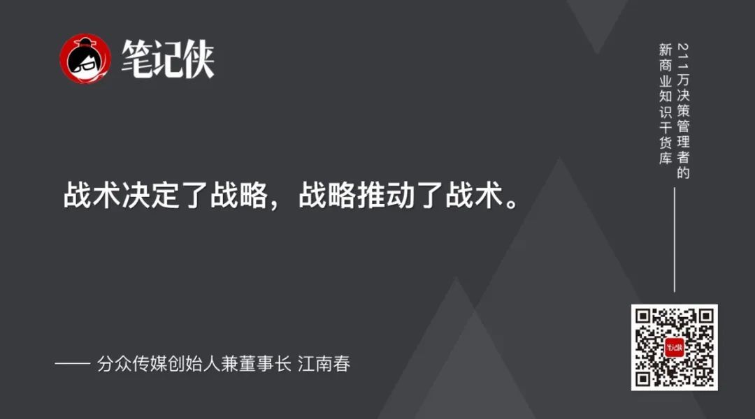 很多人觉得战略决定战术,而按照邓德隆老师的观点,战术决定战略,战术是抢到一个最有力的位置,战略是调动公司所有的资源向能打赢的位置力出一孔,这是完全相反。