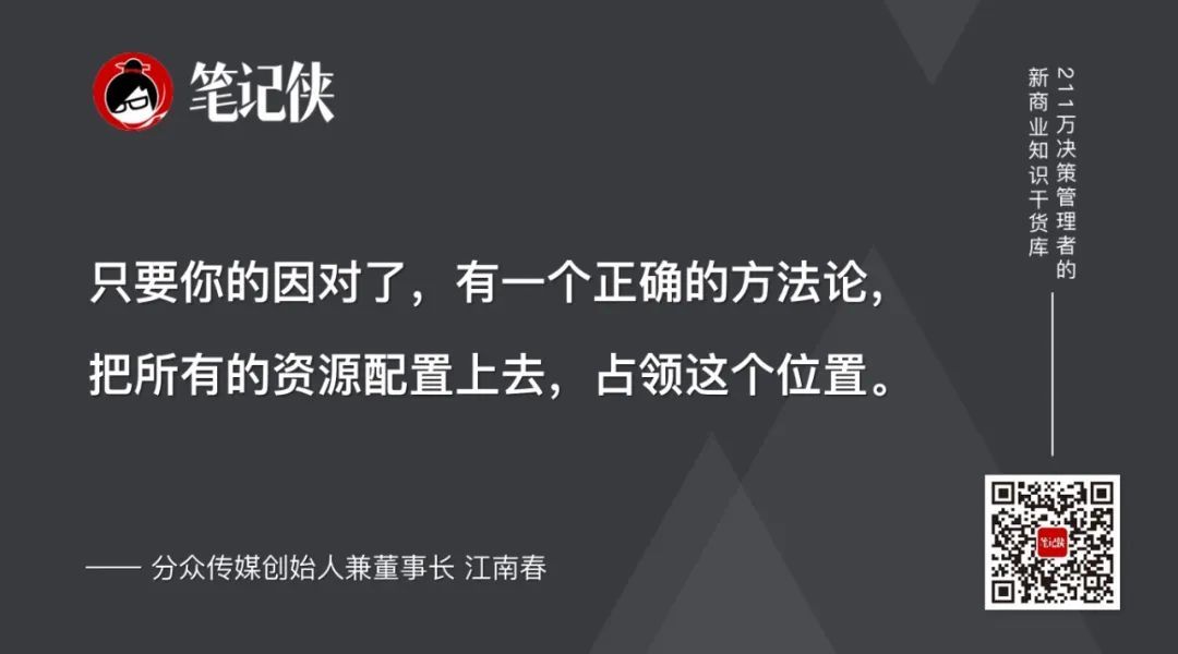 “菩萨畏因,凡夫畏果”,只要你的因对了,有一个正确的方法论,把所有的资源配置上去,占领这个位置。