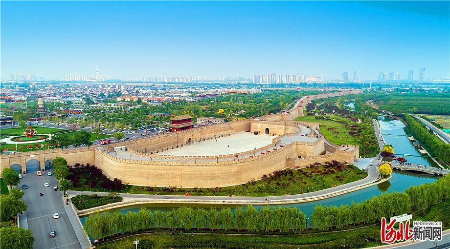 正定南城门,绿树映照,碧水环绕。 河北日报记者赵杰摄