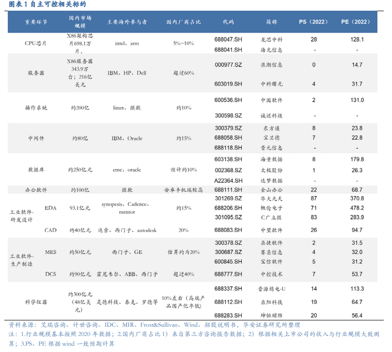 外媒称美国政府计划对用于半导体设计的特定类型EDA软件实施新的出口管制,EDA板块投资热情高涨,主要公司华大九天、概伦电子及周五上市的广立微。除了EDA外,当前国内同样受卡脖子问题影响的细分领域,自上而下由硬至软包括CPU芯片、服务器、办公软件、工业软件等。华安证券建议关注标的包括: